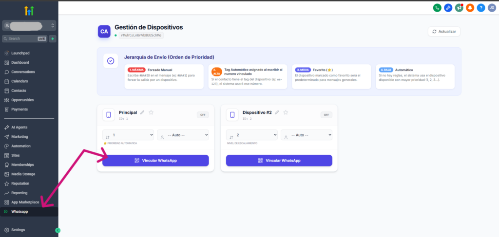 Conectar dispositivo QR desde el Panel del Cliente (Desde GHL) #